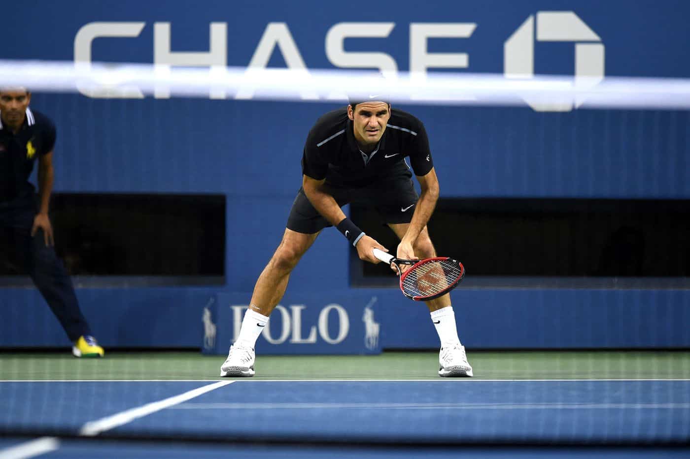 la raquette est emmenée rapidement sur le coté du corps dès la lecture de la trajectoire de balle te la prise a été modifiée. Federer a amorcé tout de suite le déplacement latéral, et le poids du corps est positionné sur la jambe gauche. Le regard est intensément fixé sur la balle.