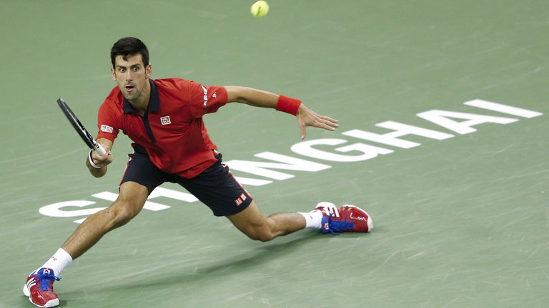 Photo 1 : Djokovic oriente très tôt les épaules mais sa position presque dans le terrain lui impose une amplitude très faible de préparation. Les jambes sont directement très fléchies ce qui va assurer un centre de gravité très bas pour un déplacement rapide et des appuis forts.
