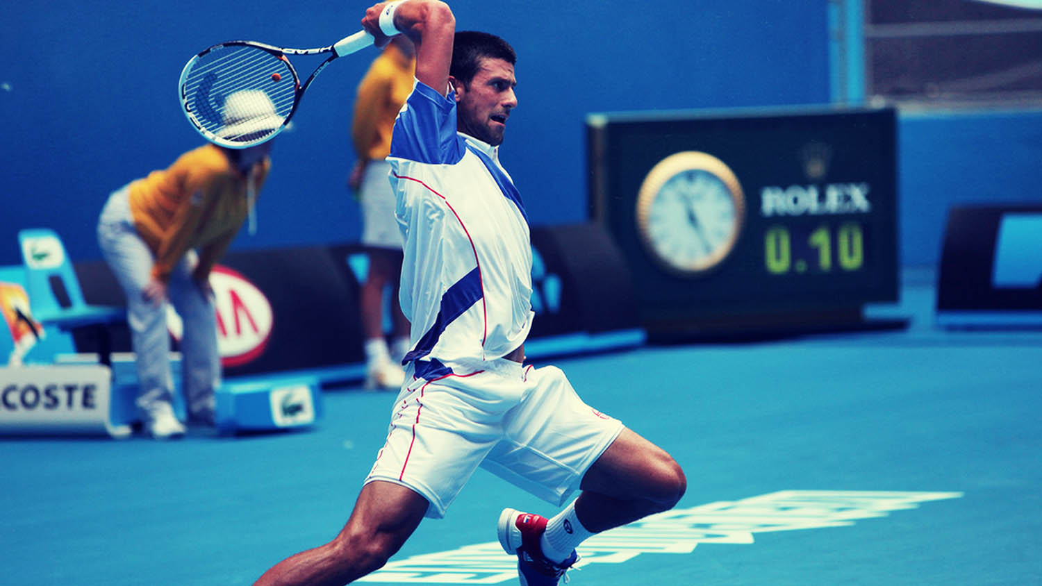 Photo 1 : Le joueur suisse se déplace très rapidement en pas courus. On peut noter que les épaules ont déjà débuté leur orientation pour faciliter la course mais également gagner du temps dans la préparation.